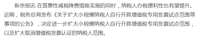 一、小规模纳税人自行开具增值税专用发票试点范围扩大!